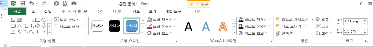 하고, 개체 마우스 왼쪽 버튼으로 선택하여도 그리기 도구 "서식" 리본 메뉴가 생성됩니다.